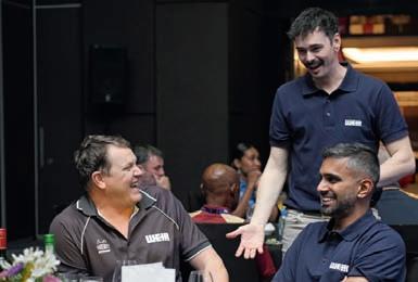 Mark addressed the group with an exciting update: STM is now an o icial New Holland dealer, further expanding its o erings while continuing to support the Kobelco and ASV equipment lines and a variety of other makes. He also announced the addition of the Hydrema range of tippers, a complement to their machinery stable.