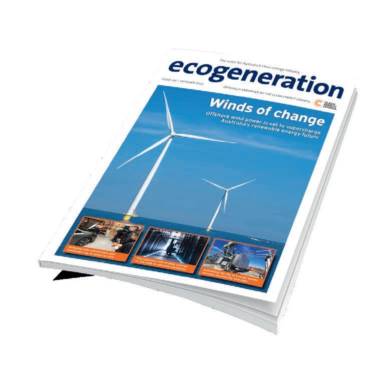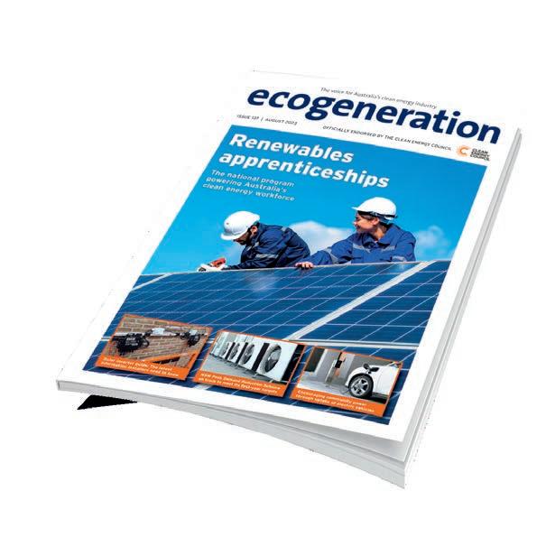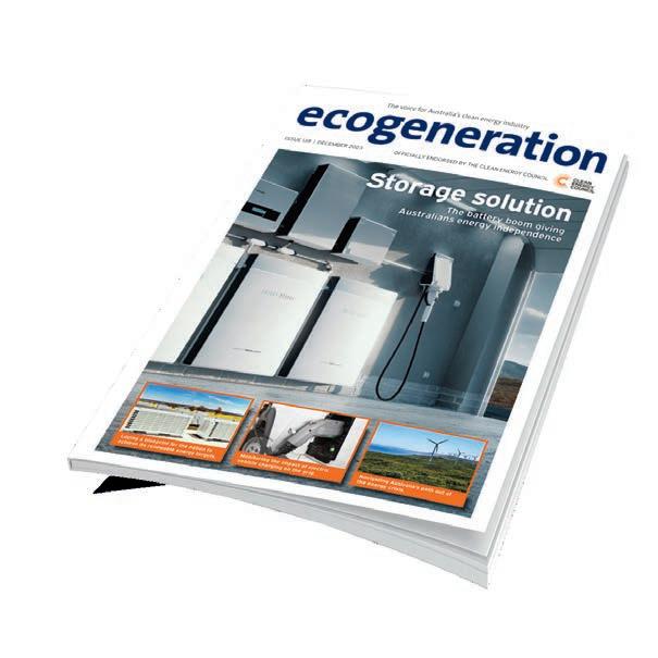 ecogeneration is the only title in Australia to cover all aspects of the clean energy industry; delivered across print, online and email. The bi-monthly magazine, officially endorsed by the Clean Energy Council, keeps the industry informed from the boardroom to the work van.