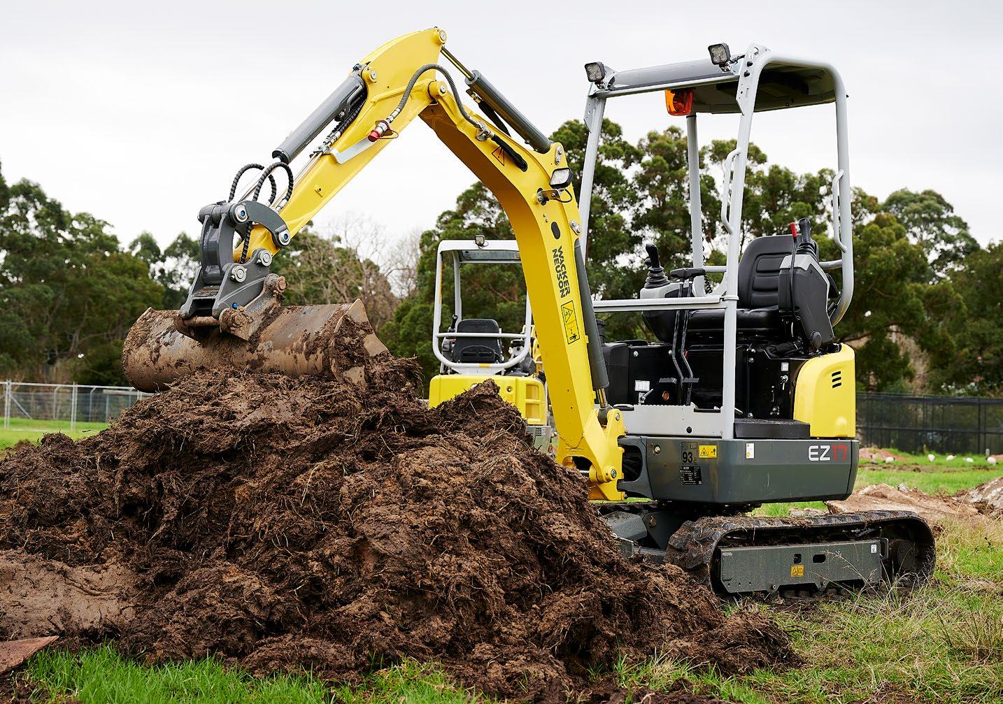 Michael continued, “With its compact design the EZ17 offers good value with the way we order this machine in. It comes with a great list of features, including factory fitted hydraulic hitch as standard, long dipper stick providing the customer 2486mm digging depth and maximum dumping height of 2550mm, rear counterweight to counteract the long dipper, and powerful 18.2hp engine. The high thermal resistance, which means this machine can work in up to 45 degrees Celsius without loss of performance and optimally match hydraulics LUDV (load sensing pumps), ensures excellent digging power and sensitive control. Also included are steel grooved pins and bushes and retractable tracks 990mm to 1300mm with dozer blade extensions, which provide superior stability and optimal maintenance access.