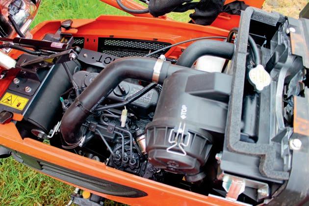 1. The BX25D is quickly transformed into a powerful mower 2. A Kubota 23hp, liquid cooled threecylinder diesel engine packs a huge punch 3. Kubota has made its name as a manufacturer of quality products 2.3m turning circle allows me to manoeuvre around within the yards with ease. With the bucket on the front end loader tilted forward, I can effortlessly scrape the thick layer of dirt and cow manure backwards into the centre of each yard. Getting right up against the fence is a breeze because the bucket is 75mm wider than the total width of the tractor. The industrial tread tyres are providing fantastic traction with not a hint of wheel slippage. Operating the loader and bucket via the joystick controller makes filling the bucket an absolute breeze. Having a maximum lift height of 1,810mm means I could easily load a ute or trailer. To be completely honest I’m finding it very hard to fault this little workhorse.