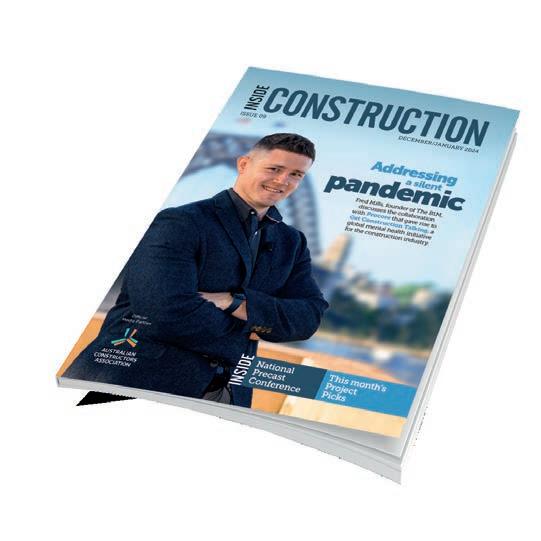 Copyright Inside Construction is owned by Prime Creative Media and published by John Murphy. All material in Inside Construction is copyright and no part may be reproduced or copied in any form or by any means (graphic, electronic or mechanical including information and retrieval systems) without written permission of the publisher. The Editor welcomes contributions but reserves the right to accept or reject any material. While every effort has been made to ensure the accuracy of information, Prime Creative Media will not accept responsibility for errors or omissions or for any consequences arising from reliance on information published. The opinions expressed in Inside Construction are not necessarily the opinions of, or endorsed by the publisher unless otherwise stated.
