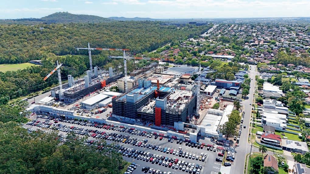 Construction continues on the QEII Jubilee Hospital expansion and new multi-storey carpark in Queensland. (Image: Built)