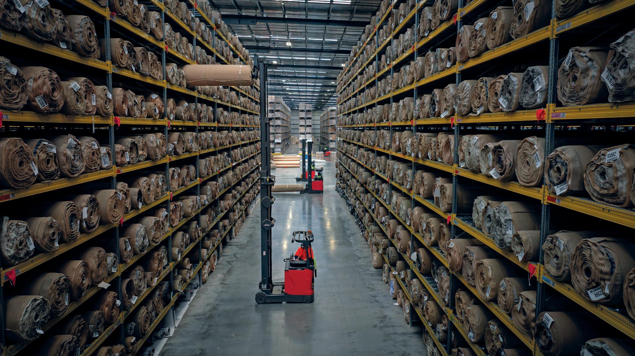 Sarah explains the scale: “Interstate, we ship around two million kilograms of freight every week. Add local and country deliveries, and it’s about 5.3 million kilograms. Because we work with roll product like carpet and vinyl, everything takes longer to load and requires much more precision. The material handling equipment we use is absolutely integral.”