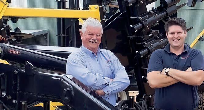 The NSK Agri Disc Hub Darryl Hine with his nephew and managing director of Direct Seeding Stewart Mactaggart.