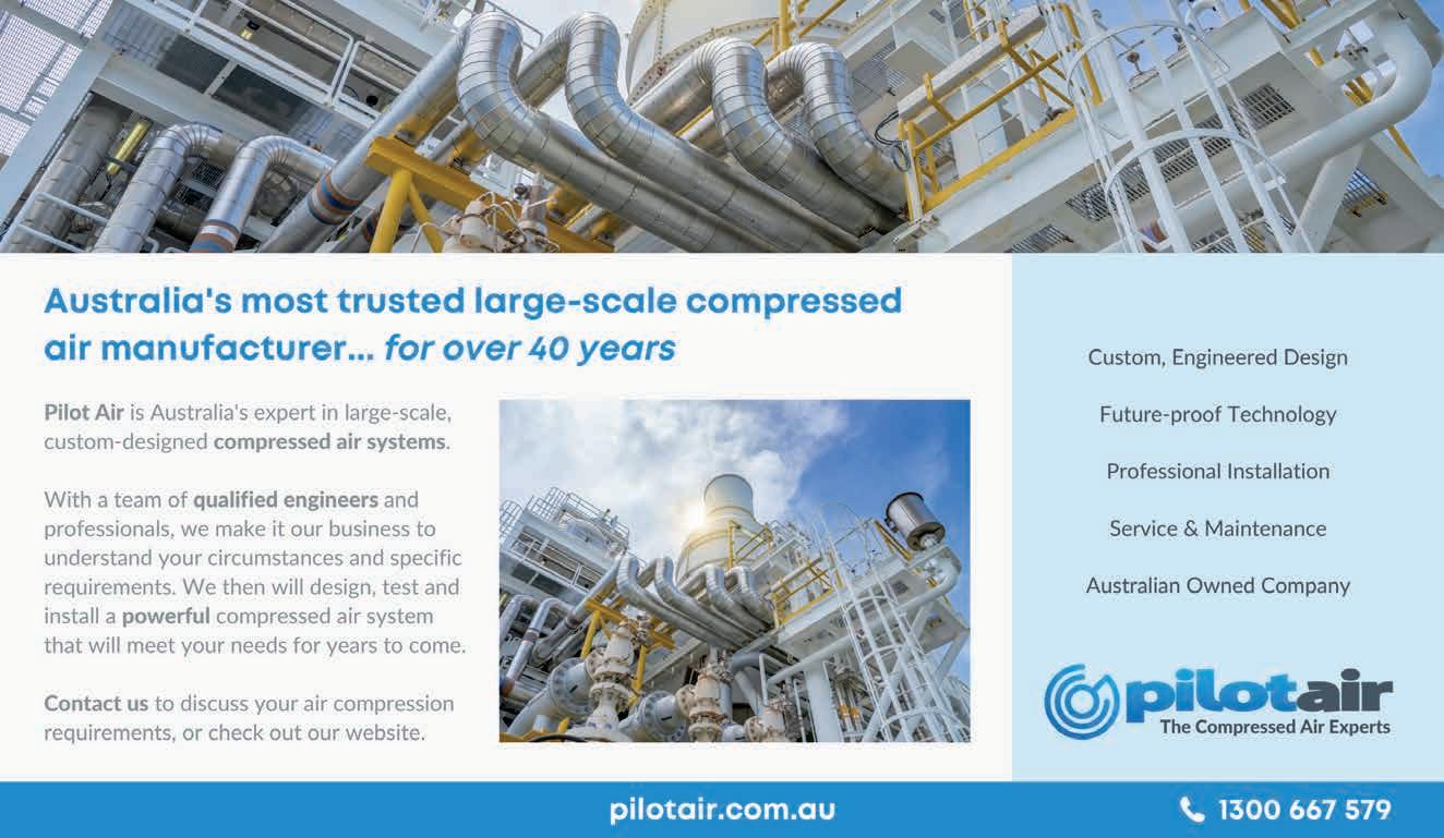 CALL 1800 800 878 OR VISIT CAPS.COM.AU CAPS’ BRUMBY VARIABLE SPEED DRIVE 5-15kW COMPRESSORS COMPLETE SOLUTION WITH DRYER EUROPEAN MADE UP TO 35% POWER SAVINGS OVER FIXED SPEED COMPRESSORS* *Based on comparable compressors r running @ 75% load manmonthly.com.au MANAGEMENT >> TECHNOLOGY >> SOLUTIONS FEBRUARY 2023