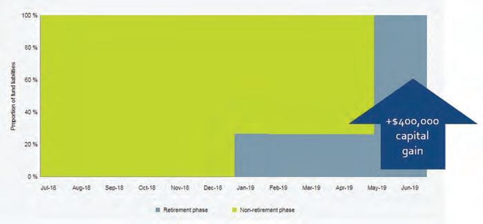 6. Consider a fund with disregarded small fund assets has an opportunity to sell an asset for a large capital gain over the next couple of years. In the 2018-19 financial year the fund was half in retirement phase and half in non-retirement phase, in the 2019-20 financial year the fund was solely in retirement phase. When would you sell the asset to realise the capital gain tax free?