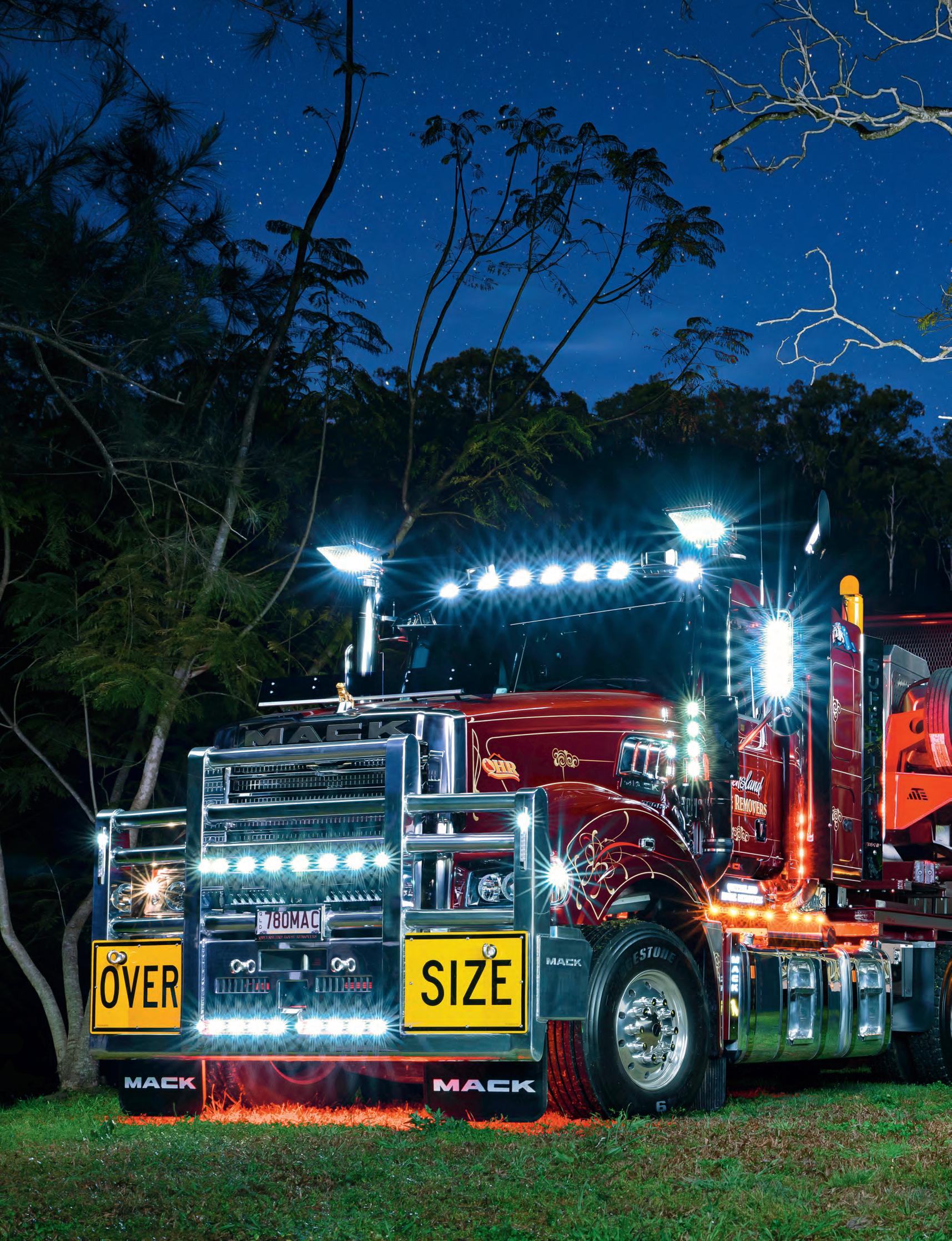 – beautiful shows, heartwarming tales and the very latest and most intriguing truck technology. Starting with our Truck of the Month from page 28, Warren Aitken had a wonderful day and night out witnessing Queensland House Removals’ new Mack perform an incredibly complex move. Luckily his superb photography skills were on full display to capture the slow moving load.