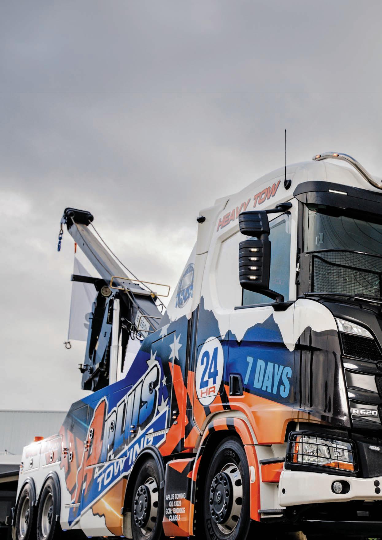 Canberra based Aplus Towing uses a unique, eye-catching Scania heavy tow truck to complement a fleet of Isuzu tilt trays.