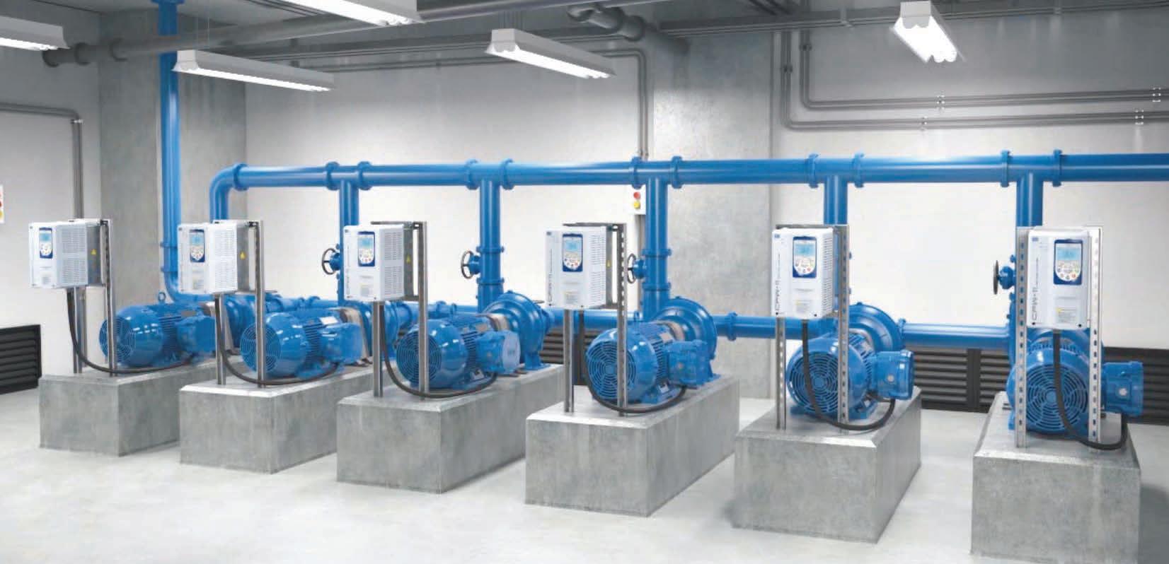 Multipump is the best choice when a pumping system needs to be integrated with a costeffective solution. It enables one single VSD to control up to 5 pumps via DOL, soft-starter or other starting methods.