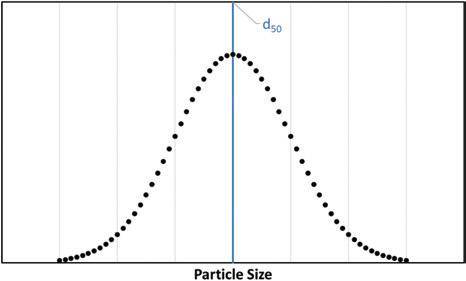 It is important to note that not all slurries will result in a symmetrical distribution. Figure 3 illustrates a median d50 which is not equal to the mode of the curve.