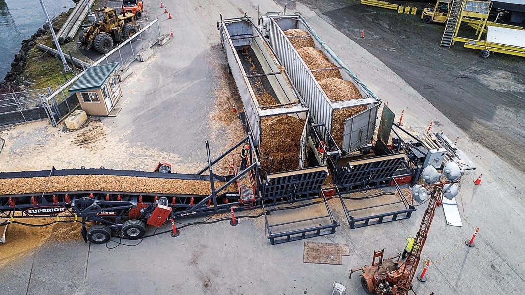 The new facility is located near Lascelles Wharf and features a covered conveyor system to reduce local truck traffic.