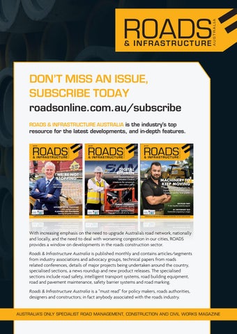 AUSTRALIA’S ONLY SPECIALIST ROAD MANAGEMENT, CONSTRUCTION AND CIVIL WORKS MAGAZINE AUSTRALIA’S ONLY SPECIALIST ROAD MANAGEMENT, CONSTRUCTION AND CIVIL WORKS MAGAZINE