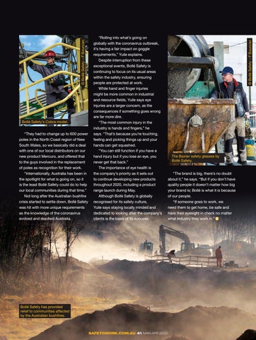 “They had to change up to 600 power poles in the North Coast region of New South Wales, so we basically did a deal with one of our local distributors on our new product Mercuro, and offered that to the guys involved in the replacement of poles as recognition for their work. “Internationally, Australia has been in the spotlight for what is going on, so it is the least Bollé Safety could do to help our local communities during that time.” Not long after the Australian bushfire crisis started to settle down, Bollé Safety was hit with more unique requirements as the knowledge of the coronavirus evolved and reached Australia.