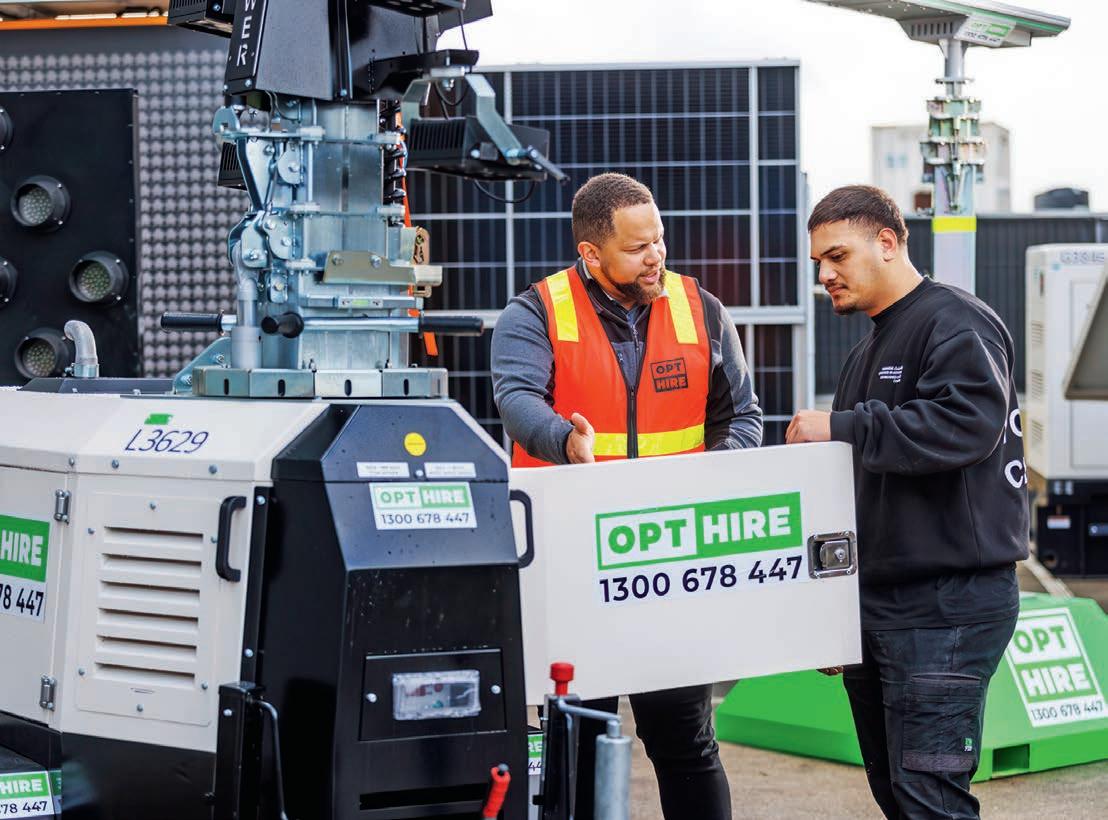 Opt Hire’s gear has been running flat-out, with hybrid generators now used on everything from road upgrades to major infrastructure builds.