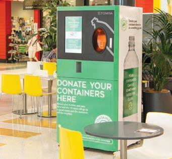As part of the Partners for Change initiative, TOMRA reverse vending machines have been set up as donation stations in high-traffi c areas, such as shopping centre food courts, to target on-the-go consumables such as soft drinks and water bottles. The machine allows shoppers to donate the 10 cent container refund directly to the charity, which is identifi ed on the machine’s interface.