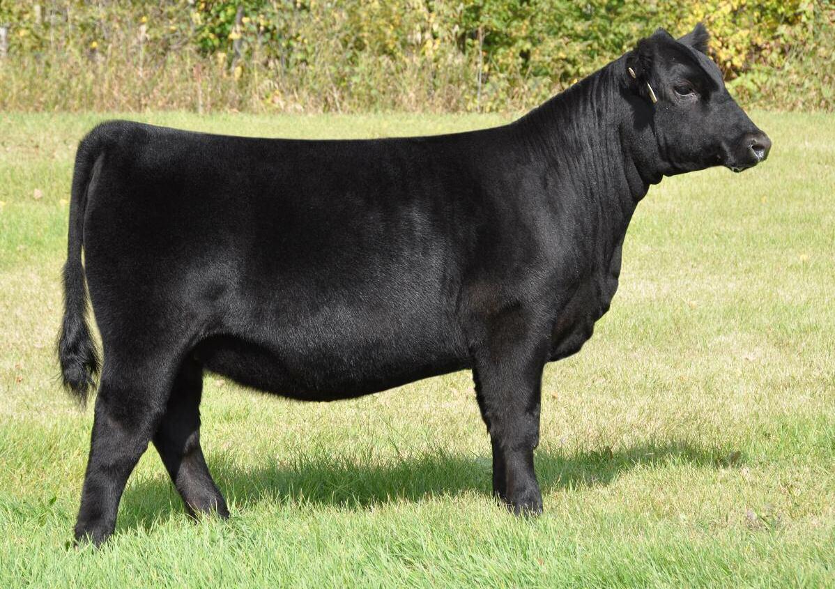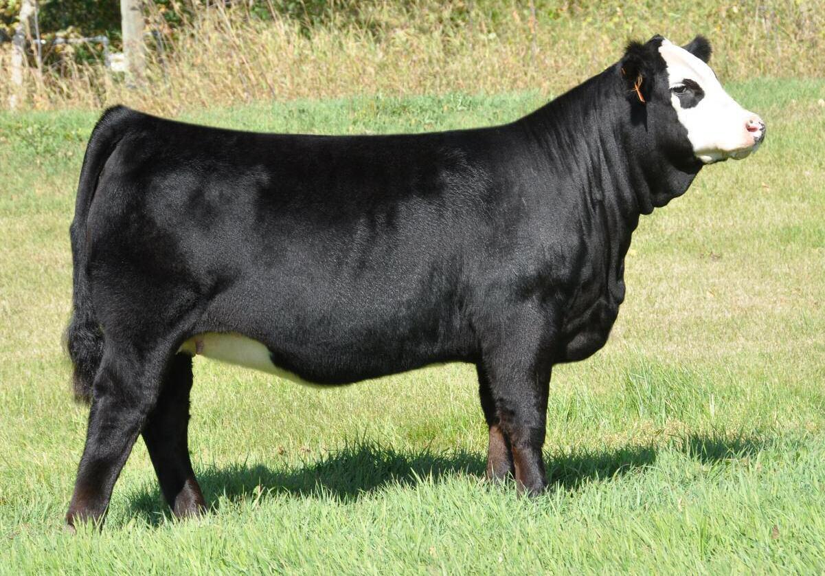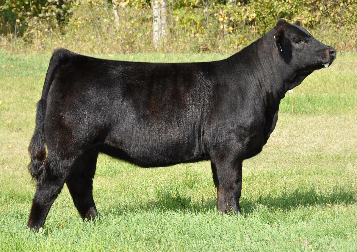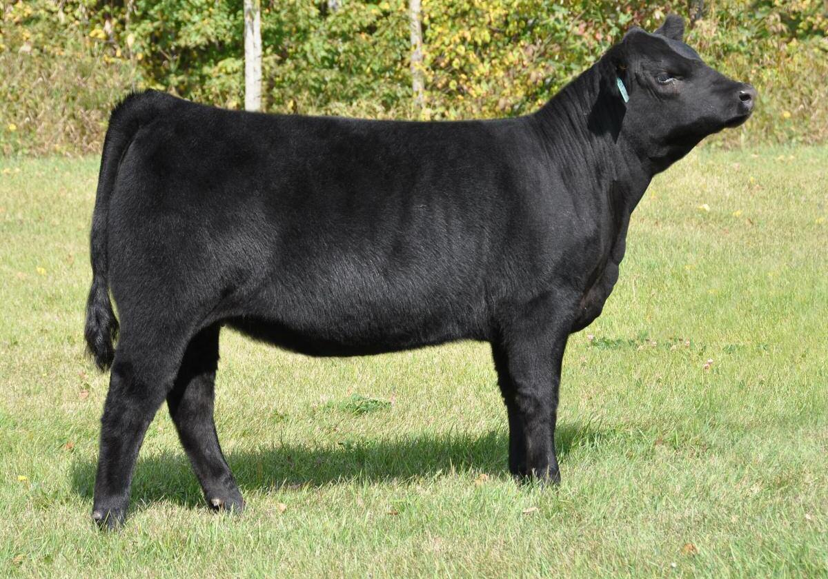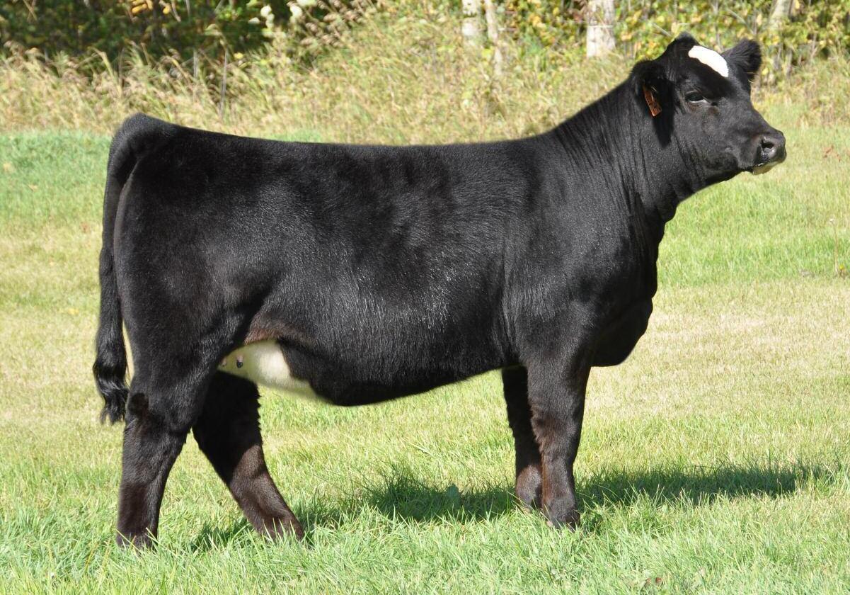 When you get the opportunity to add a full sib to Cottage Lake Border Agent you need to take notice and dig in on this one. This is your first and possibly only chance to get this pedigree in your herd! Border Agent is a breed changer and his progeny follow suit. They have demanded very high values and have collected numerous banners throughout North America. More importantly than how she reads on paper is what u see on foot. 736E is the power female of this offering and she simply has the most mass, width and depth all on a great set of wheels We feel she will be a spitting image of her mother as you study her through her skull, centre third and massive hind quarter you can't help but love the opportunities this female will create.