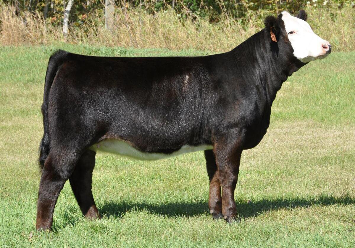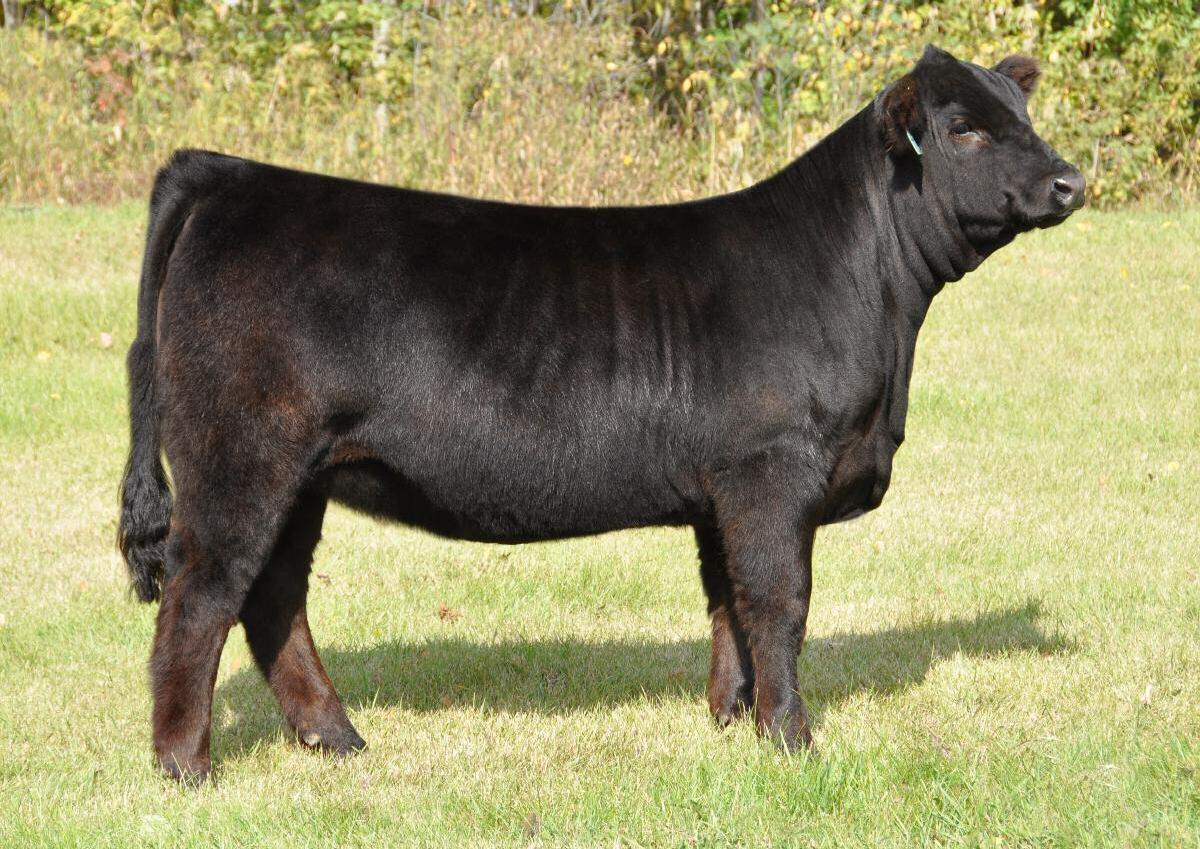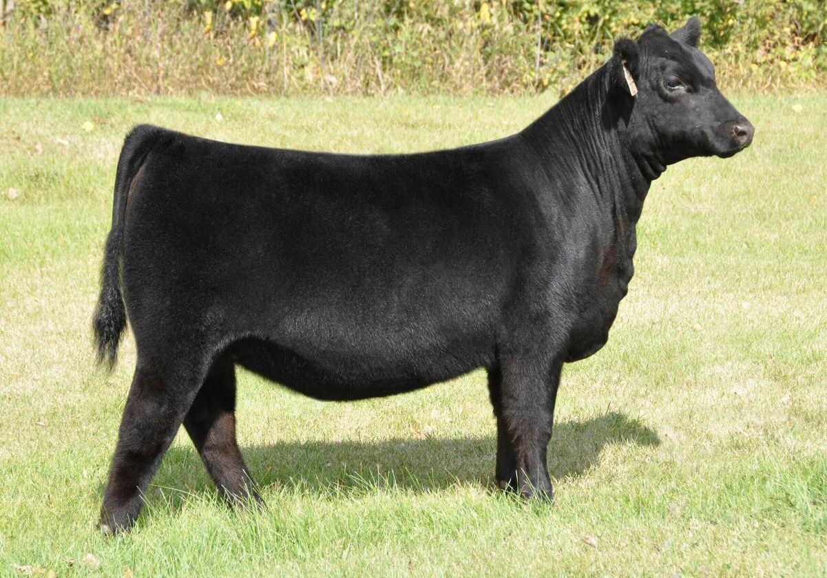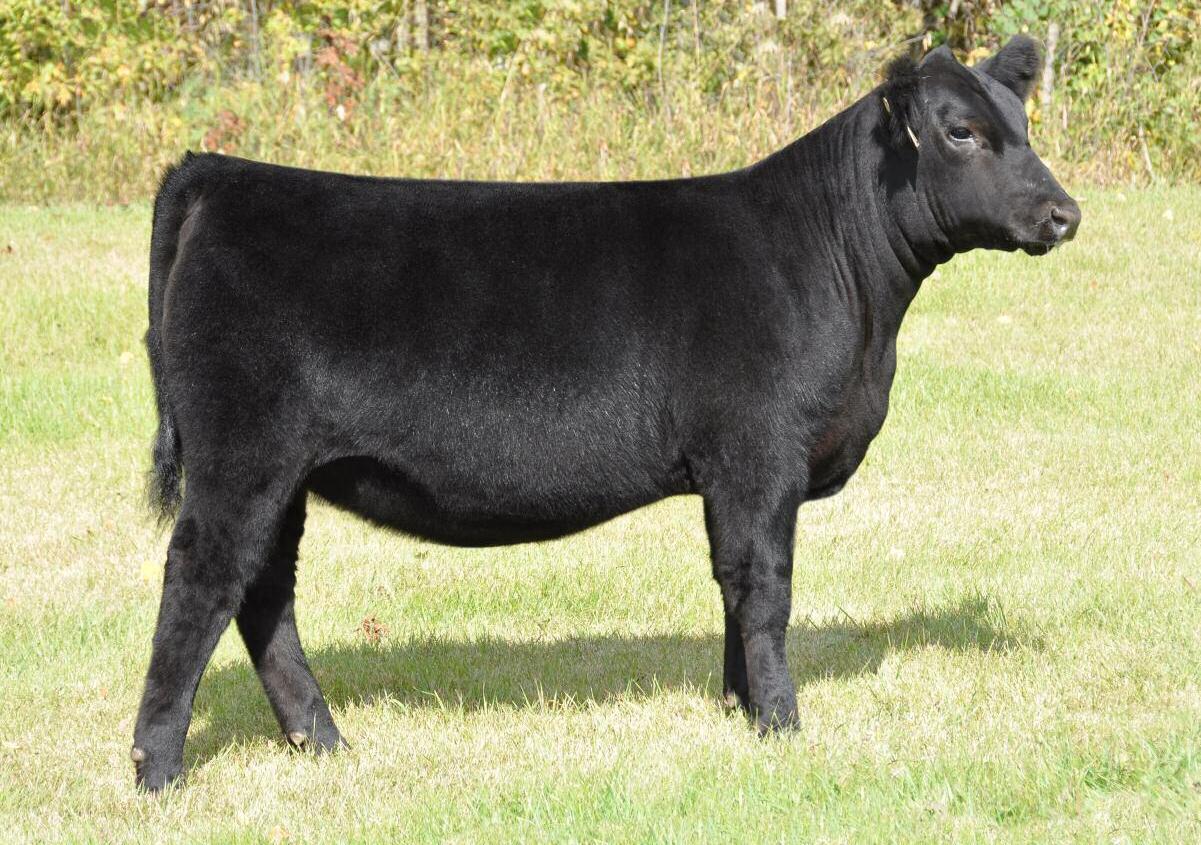 When you get the opportunity to add a full sib to Cottage Lake Border Agent you need to take notice and dig in on this one. This is your first and possibly only chance to get this pedigree in your herd! Border Agent is a breed changer and his progeny follow suit. They have demanded very high values and have collected numerous banners throughout North America. More importantly than how she reads on paper is what u see on foot. 736E is the power female of this offering and she simply has the most mass, width and depth all on a great set of wheels We feel she will be a spitting image of her mother as you study her through her skull, centre third and massive hind quarter you can't help but love the opportunities this female will create.