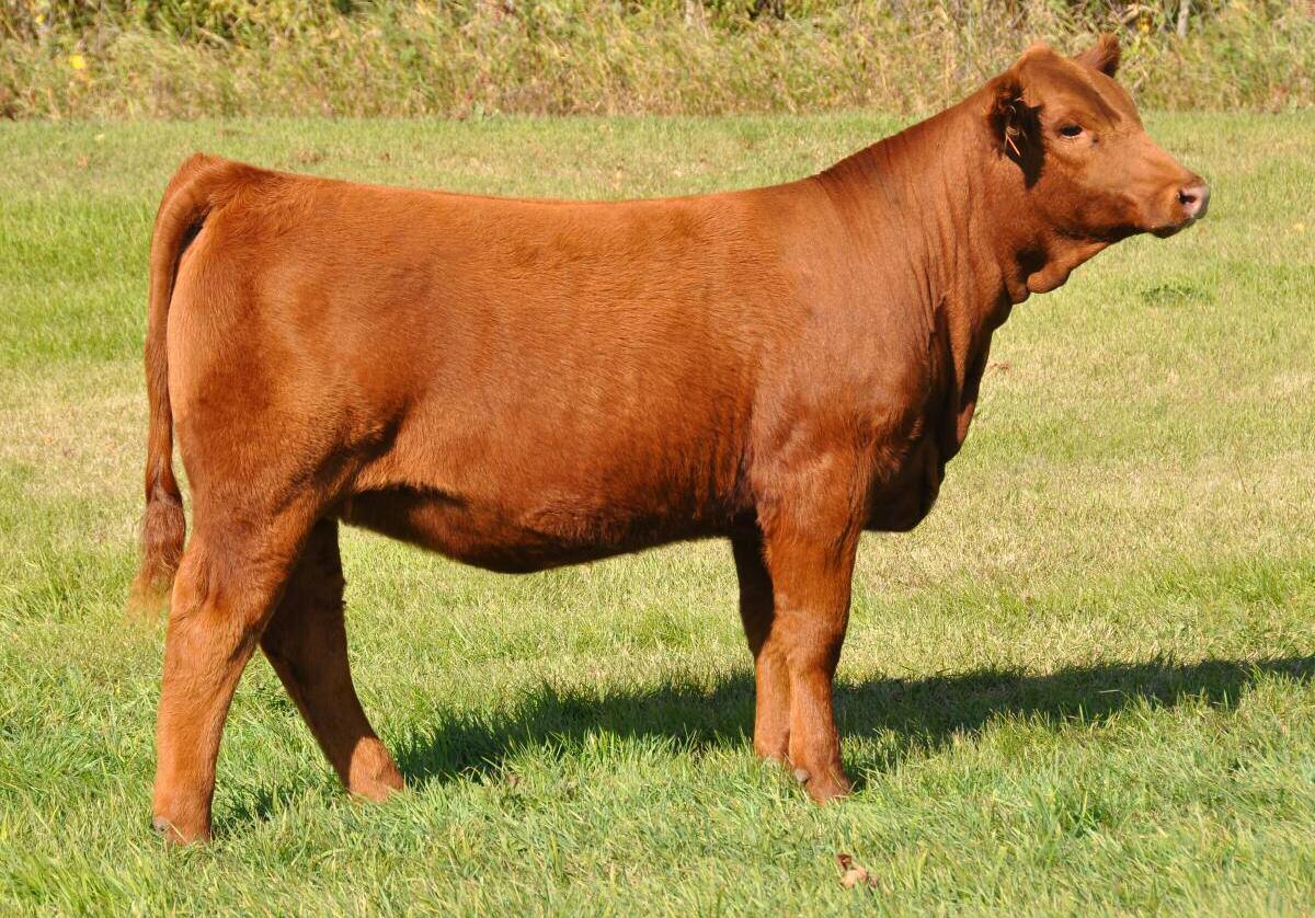 As we strive to be the source of elite females we bring to you the first lot in our Simmental division! Each heifer deserves to start this division but life isn’t fair, so we decided to start with the combination heifer of the group A hole can not be picked in this direct daughter of WLE Uno Mas who we feel adds some exciting, fresh genetics on the top side. On the bottom side she is out of our up and coming solid red 2 year old by Royal Affair that walks the pasture on a set of perfect feet and legs, with a flawless udder and a phenotype everyone begs for! 707E has base, depth and softness in her structure as well as the width of top and skull that demands to be noticed. She combines all of that with a neat shoulder and neck, along with a gorgeous attitude which makes her a sure bet banner chaser and a female that will leave her stamp in anyone's program.