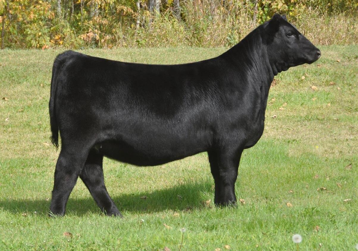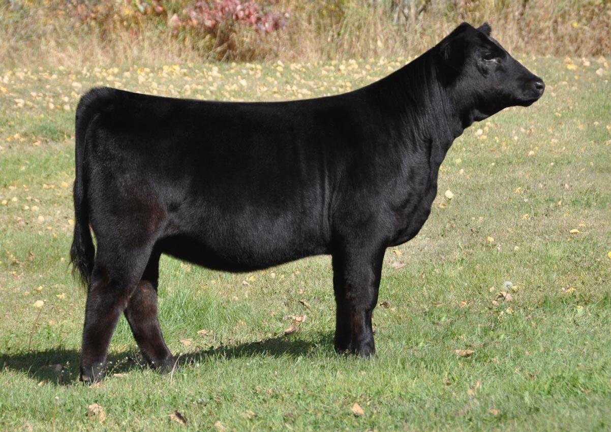 For an operation that loves to competitively show, this female is very hard to let go of. She has a look that is hard to forget and when you analyze her lines there is not much you would change. She’s big middled, jet fronted and when you set this heifer in motion she fills her track on a solid foot. This Style heifer is quite possibly one of the best Angus heifers to ever be raised at Boss Lake. If you are serious about hanging banners, this heifer is a must.
