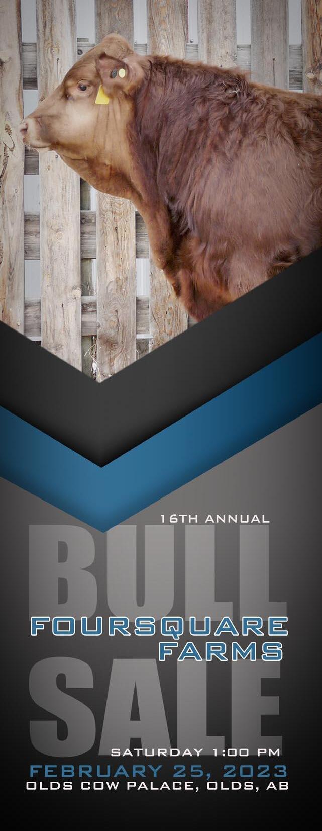 calving ease, explosive growth for calves for the fall run or are looking to breed up some exceptional replacement females, there is a bull that will work for you! Again, this year we have tested all the bulls for the horned/ polled gene and the results will be available early February and will be posted sale day! Check out our website@ www.foursquarefarms.com for updates as well as bull videos coming in February!