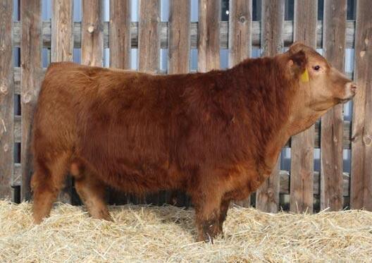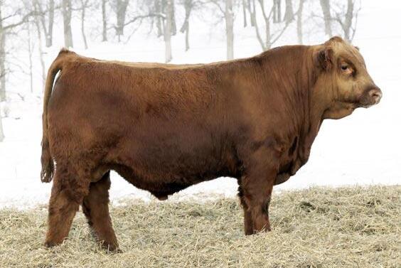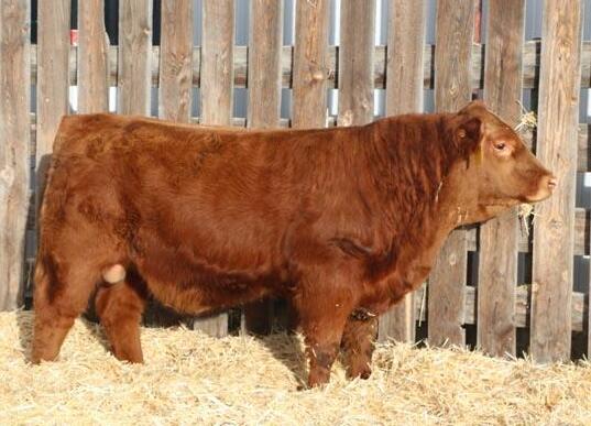 Foursquare Kruger is a moderate framed bull that will ad calving ease and low BW to his calves. He is dark red and smooth made with good neck extension and small skull size. He would work well on a group of heifers. He is sired by Lonesome A List and is out of a moderate female that goes back to SLC Parkland 145X!