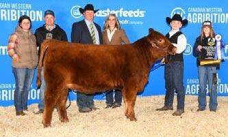 High selling heifer calf was HL Miss Julie 25J from Hurlburt Livestock, Saskatoon, Saskatchewan and was purchased for $6250 by Unger Land and Livestock Olds,Alberta. Lot 105, DVE Davidson Ms Casanova 4J from Davidson