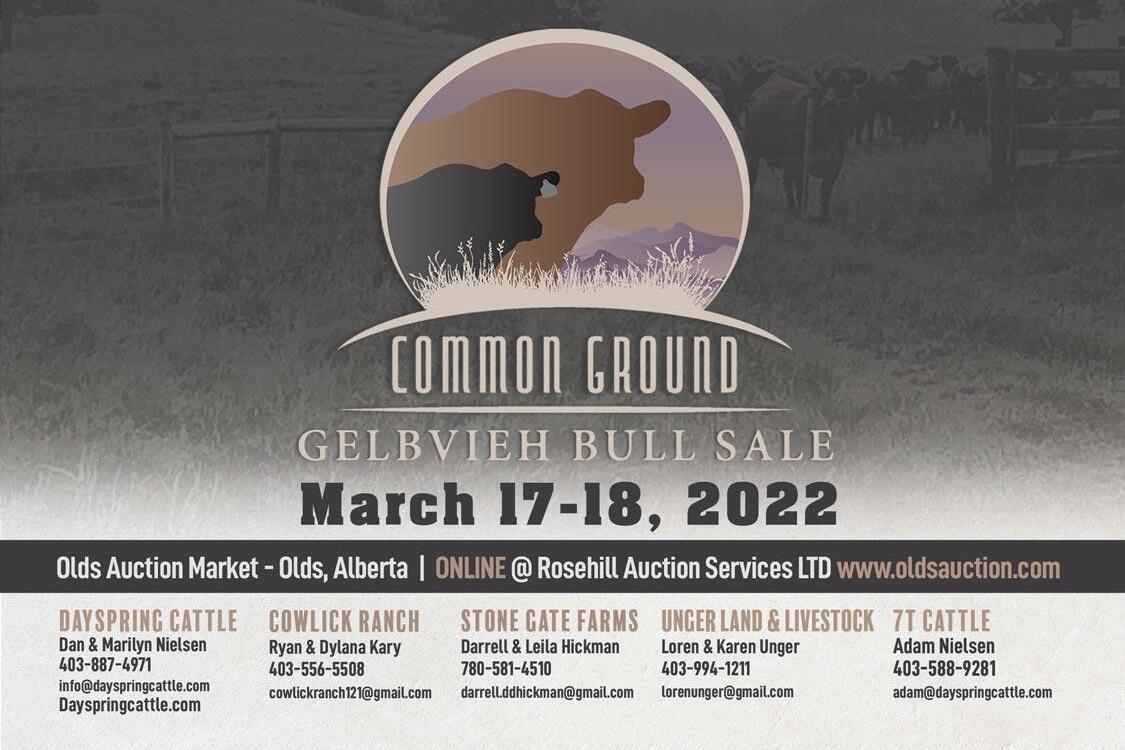 Mar. 17-18 - Common Ground Gelbvieh Bull Sale, online with Olds Auction Market, Olds, AB