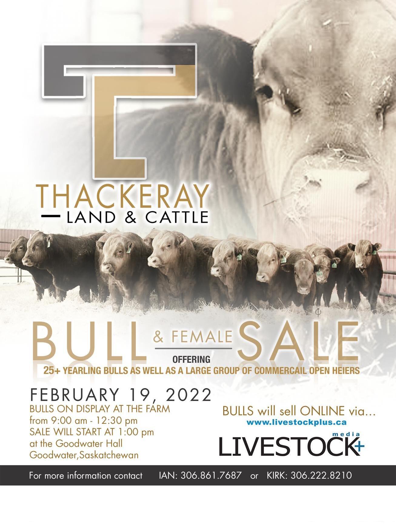 Feb. 19 - Thackeray Land & Cattle Annual Bull Sale, Goodwater Hall, Goodwater, SK