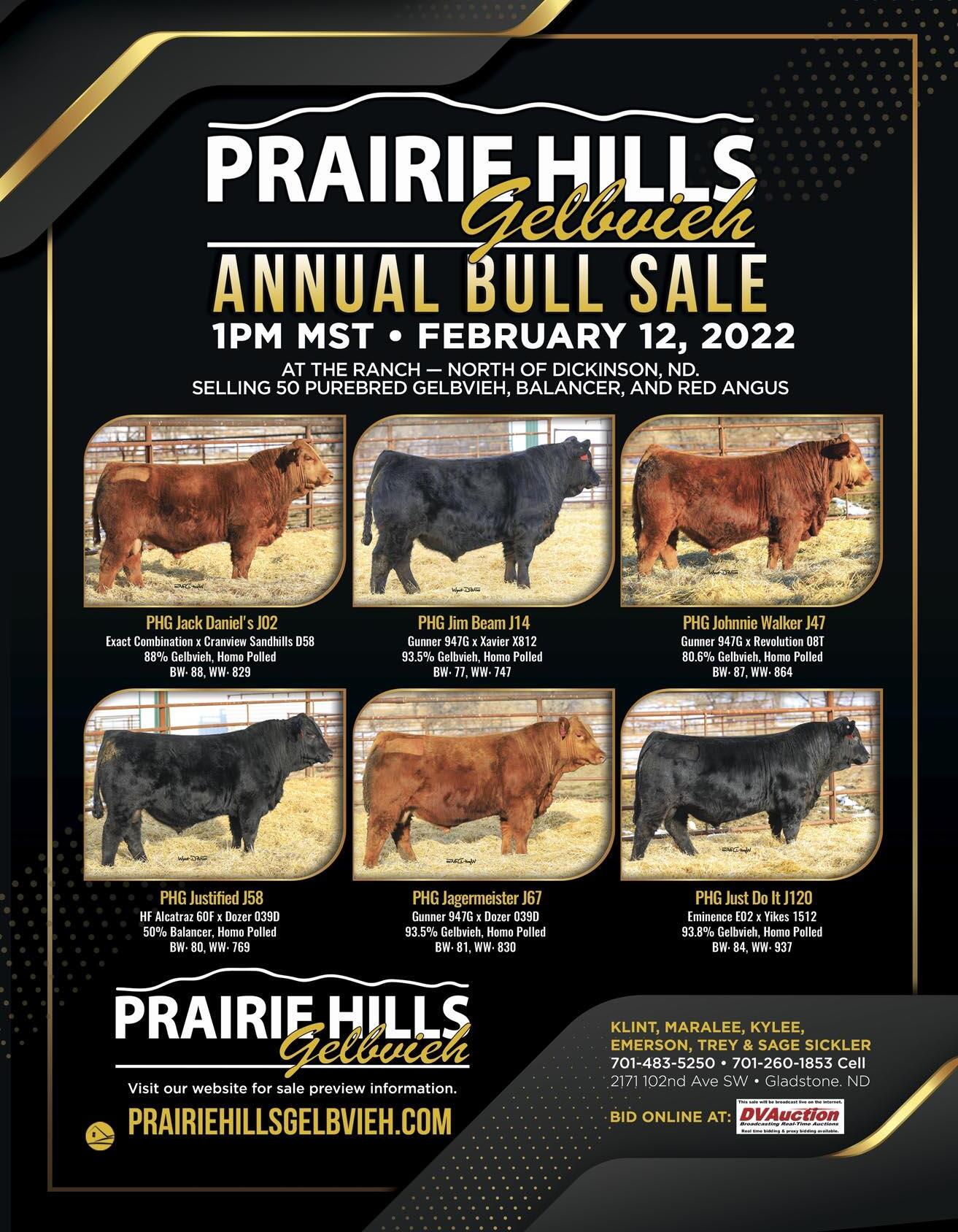 Feb. 12 - Prairie Hills Annual Bull Sale, at the ranch, Gladstone, ND