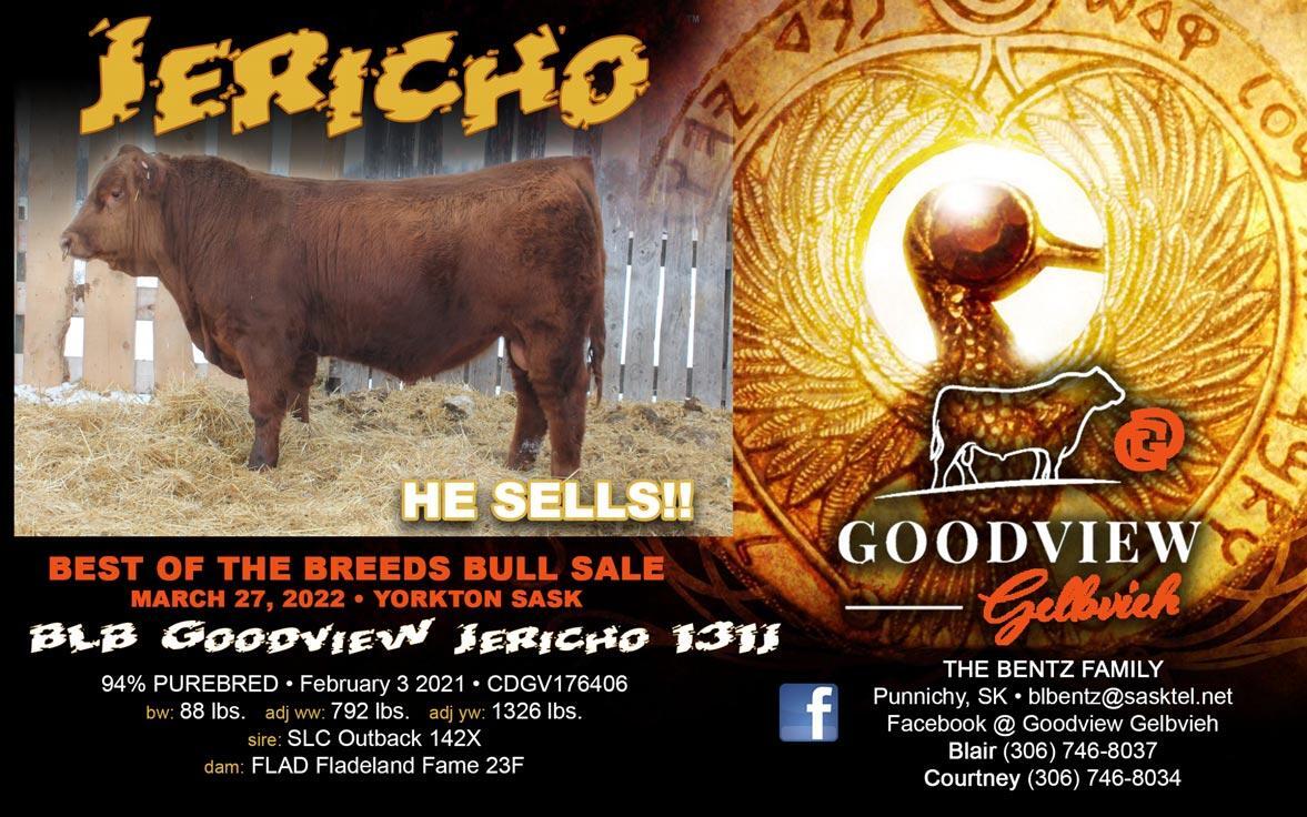 Mar. 27 – Best of the Breeds Bull Sale, consignor Goodview Gelbvieh, Yorkton, SK