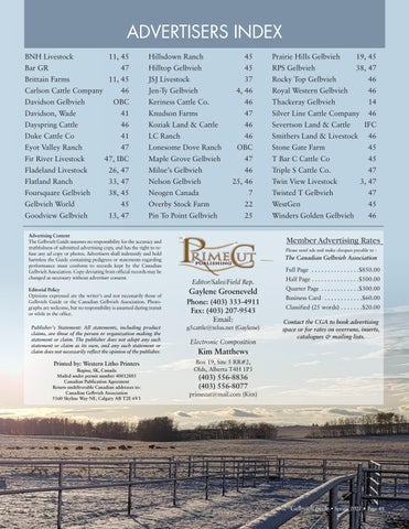 ADVERTISERS INDEX BNH Livestock Bar GR Brittain Farms Carlson Cattle Company