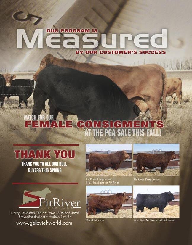 The Gelbvieh Guide assumes no responsibility for the accuracy and truthfulness of submitted advertising copy, and has the right to refuse any ad copy or photos. Advertisers shall indemnify and hold harmless the Guide containing pedigrees or statements regarding performance must conform to records kept by the Canadian Gelbvieh Association. Copy deviating from official records may be changed as necessary without advertiser consent.