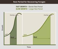 • Provide rest for pasture plants during the growing season to help plants recover. Forage plants need time to rest to allow them to replenish their energy reserves and prepare for the next grazing event. If plants don’t have adequate time to recover, pasture productivity can dwindle, and pastures can become susceptible to weed infestations, soil erosion and winterkill.
