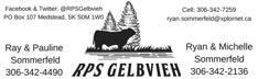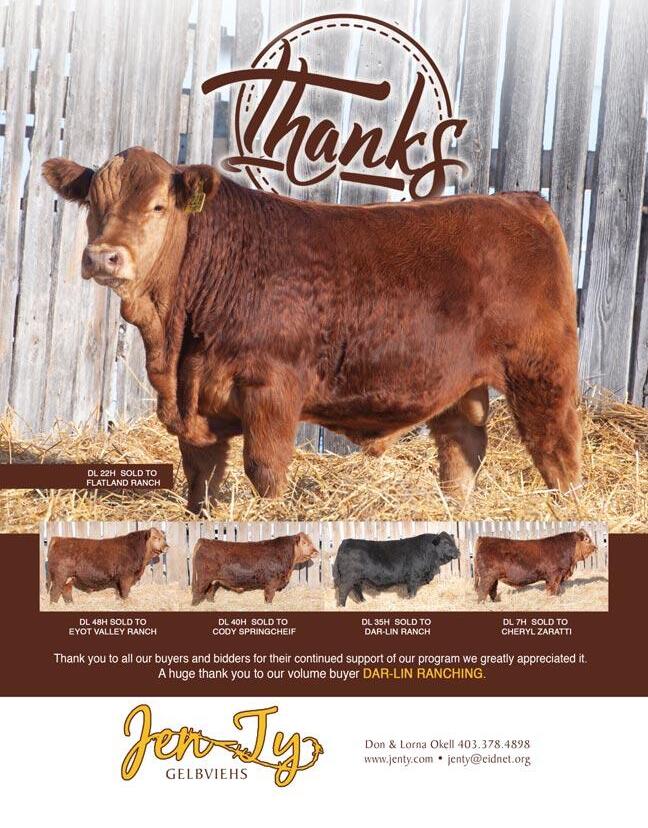 Kelly Thomasson purchased 2 bulls, and Cliff Cherniak purchased 2 Gelbvieh and a Hereford. Purchases were also made by Farrell Pott and Robby Lamoureux.