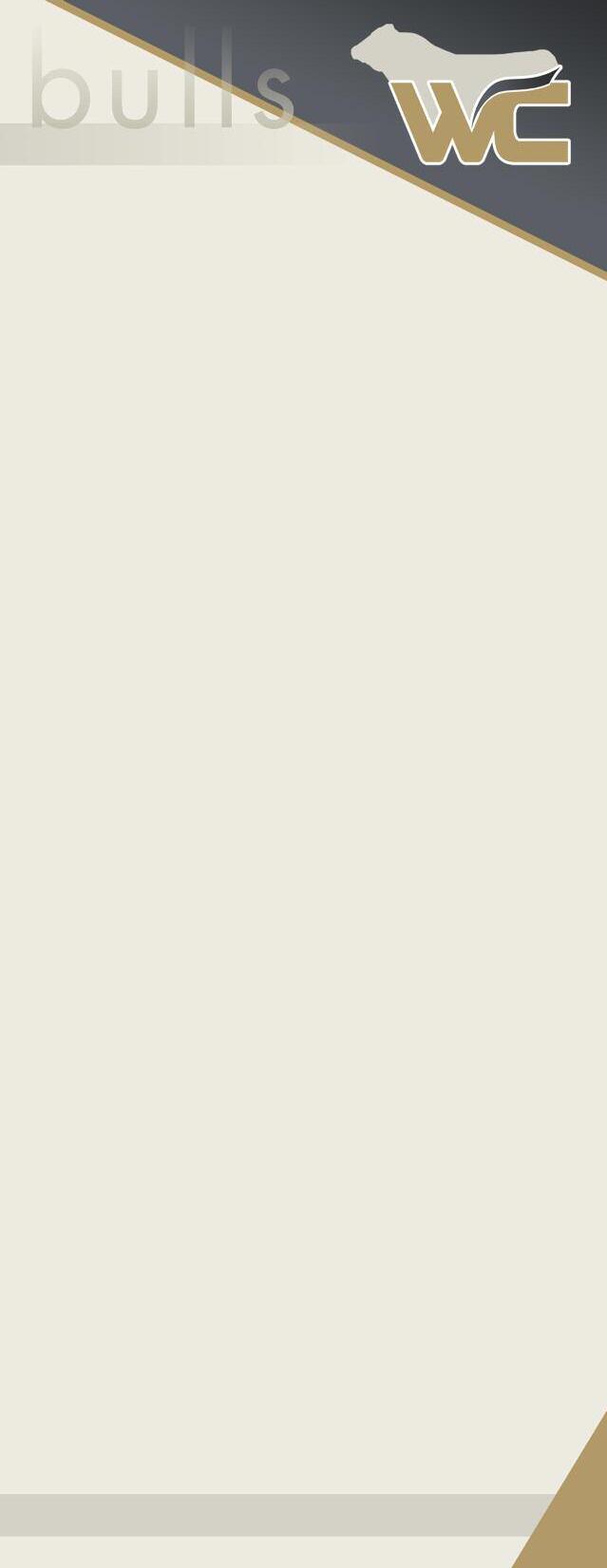 The program hasn’t changed We strive to raise a quality product with good disposition, great hair, lots of natural muscle, good feet and loads of performance The bulls are fed a pellet ration for longevity, not for optimal gains We have some new herdsires in use with this being the first offering We are extremely happy with the offspring and believe this is the best group of bulls we have offered for sale.