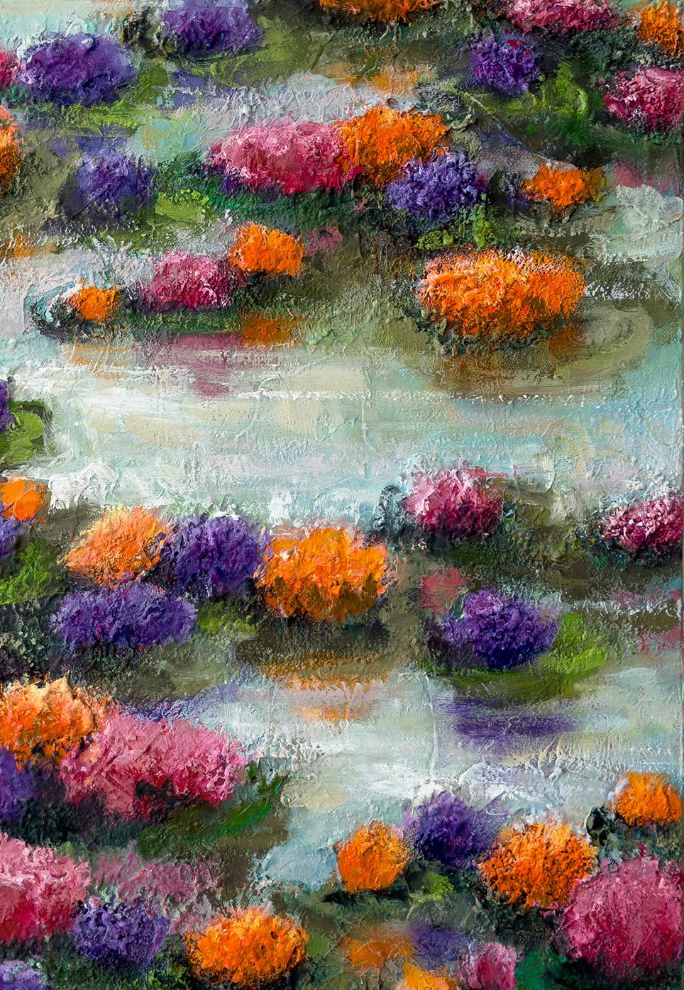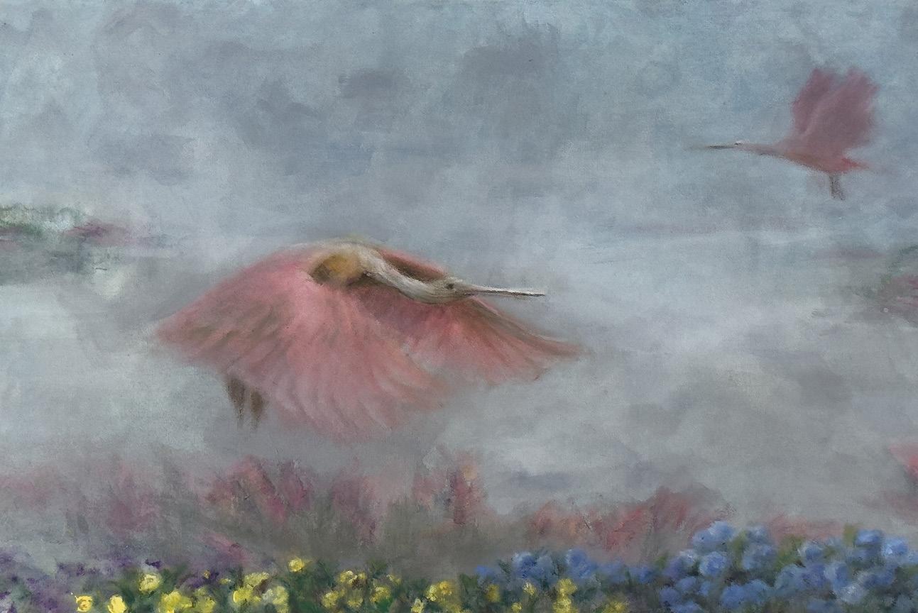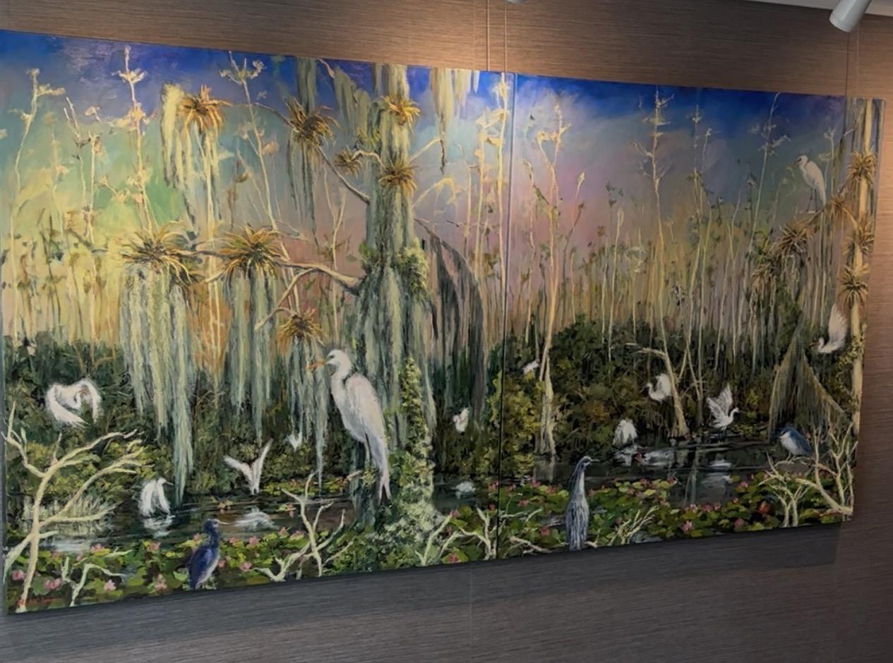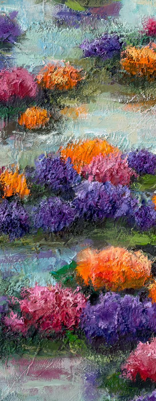 currently exhibiting a collection of twelve pieces at the Art Ovation Hotel, Autograph Collection, titled “The Place of Love” The works invite viewers into a gentle, dreamlike space, where love, healing, and emotional truth slowly unfold. Through their serene compositions and subtle textures, Mimi’s paintings radiate a quiet, uplifting energy, a moment of stillness in a busy world. They are an invitation to pause, to feel, and to reconnect with what truly matters; just as Mimi herself, after decades away from the canvas, has returned to her passion, letting the quiet love of painting guide her once more.