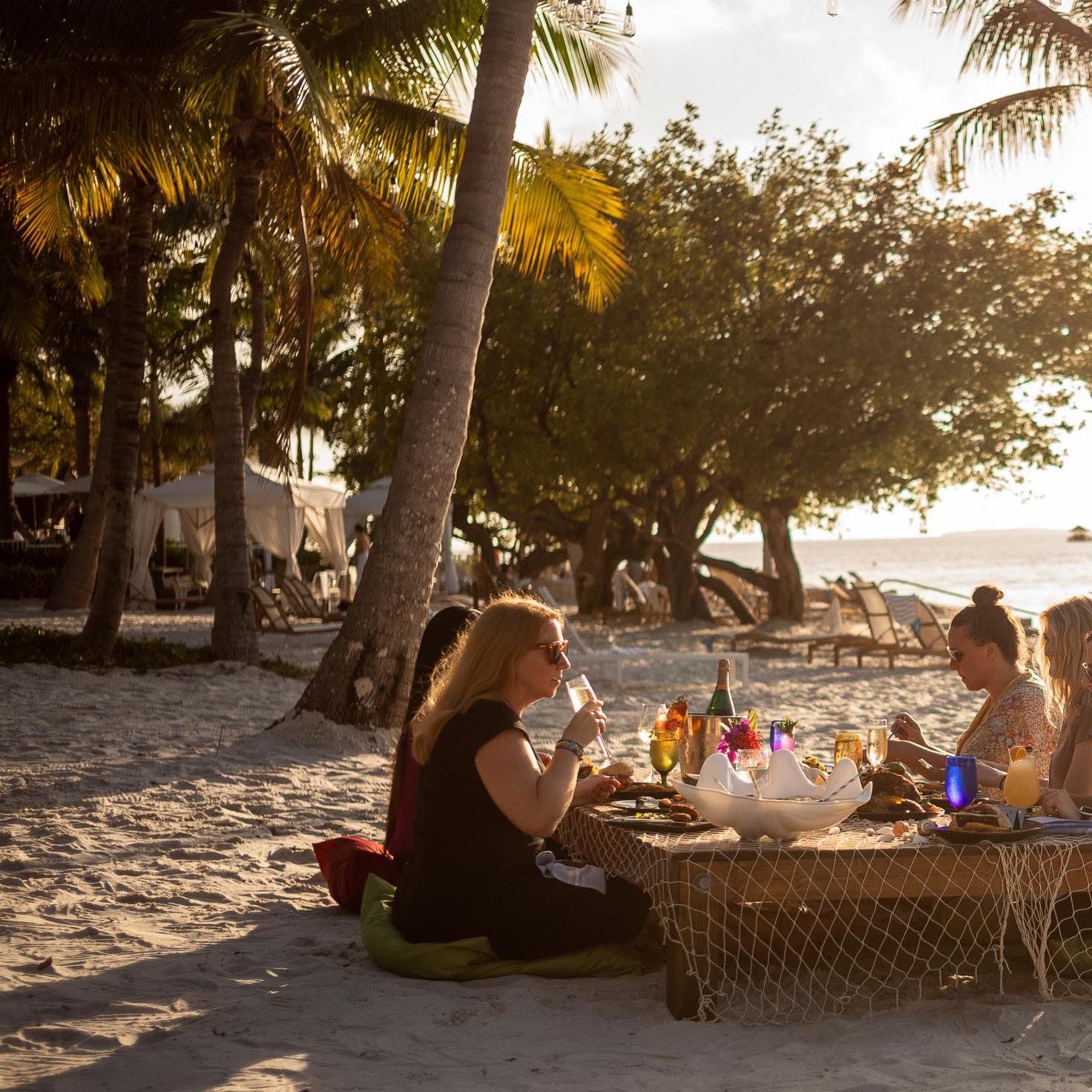 Dine right on the beach on a low table with the soothing sound of the ocean. A special dining experience that’s unique to Playa Largo Resort