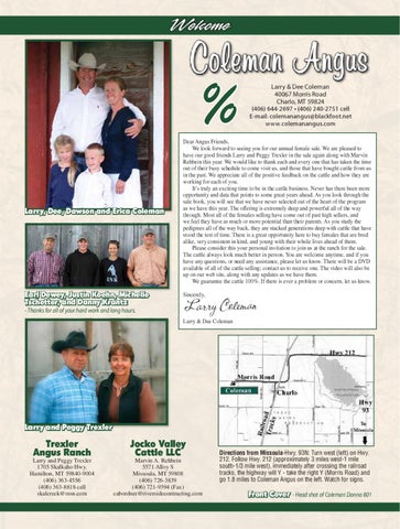 Larry & Dee Coleman 40067 Morris Road Charlo, MT 59824 (406) 644-2697 • (406) 240-2751 cell E-mail: colemanangus@blackfoot.net www.colemanangus.com