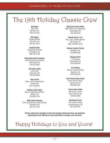 Richard Jenkins Family Abingdon, VA 276-608-8300 Shegog Farms Tim Shegog Cambridge, OH 740-255-0034