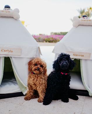 BOM PARA O SEU PET: despreocupe-se, o dog butler vai organizar toda a programação do seu “cãopanheiro”, incluindo caminhadas diárias, sessões especiais de yoga (aqui chamadas de “doga”) e massagem relaxante. Outra facilidade: pet cabanas transportáveis são disponibilizadas para usar nas piscinas ou na praia.