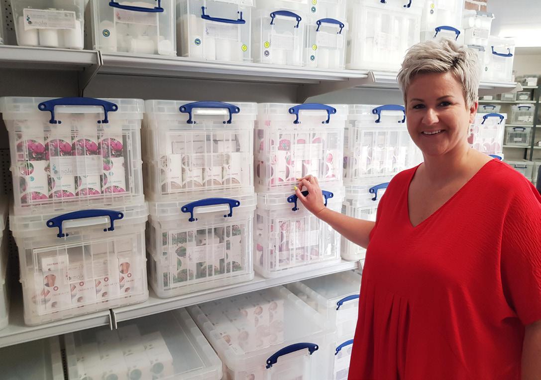 “Mijn ouders, Urbain en Marleen – hun initialen zitten trouwens ook in de naam Urmale – waren reeds in de jaren ’90 bezig met het ontwikkelen van vitaminen en mineralen in de apotheek op de Markt hier in Herk. Maar het gamma breidde steeds uit zodat er wegens plaatsgebrek werd uitgeweken naar hier. Zo’n tien jaar geleden heb ik het roer over genomen, alhoewel ik daar eerder ook al mee bezig was, hoor!”
