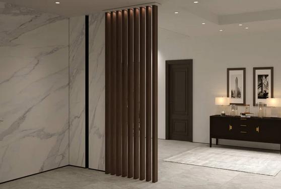 Elevate your space with our exquisite Wood Slat Divider in a rich Dark Walnut finish. Crafted with precision, Primo Panels brings you a stylish solution to divide your room while adding a touch of elegance.