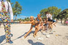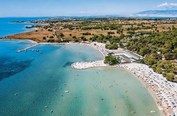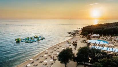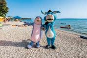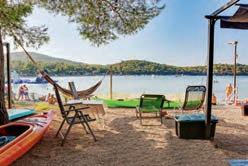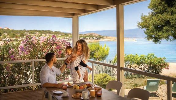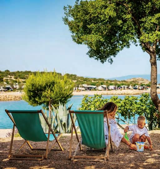 kajakov, surfov in supov (tudi e-supov!). Če pozabite pripeljati kolesa, jih najemite kar v kampu in se odpravite na raziskovanje otoka po posodobljenih kolesarskih poteh, opremljenih z razglednimi počivališči. Čeprav signal Wi-Fi lovi po celem kampu, otroke raje odpeljite na dejansko animacijo. Ločena programa mini (4–12 let) in teen klub (13–19 let) potekata od začetka junija do sredine septembra, otroci pa se lahko zabavajo še na senčnem otroškem igrišču in plavajočem vodnem parku sredi zaliva.