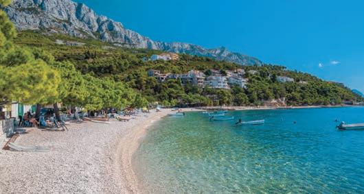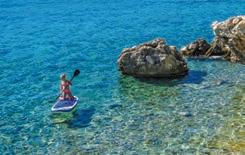 Poldrugi kilometer dolga skalnata obala ponuja napihljiv vodni park, najem koles, vodnih skuterjev, pedalinov in kajakov, popeljejo vas tudi na poskusno potapljanje.