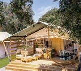 Če na morje ne tovorite lastne strehe, lahko prek slovenske agencije Sun Flower najamete klimatiziran glamping šotor. Namenjeni so družinam, saj na 30 kvadratnih metrih površine sprejmejo do pet oseb in nudijo dobro opremljeno kuhinjo, kopalnico, dve spalnici in teraso s sedežno garnituro.