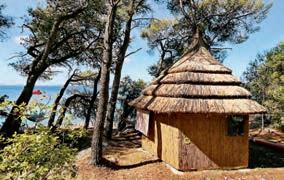 V kampu lahko za družino ali družbo prijateljev najamete tudi dokaj preprosto leseno hiško za šest oseb. Če se vam na dopustu ne ljubi kuhati, se naročite na ugoden penzionski zajtrk, kosilo ali večerjo.