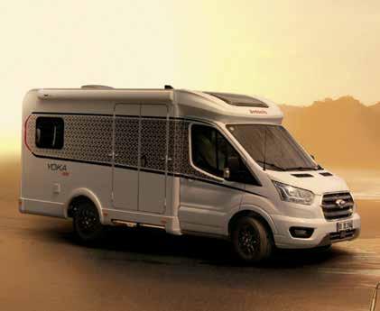 zimski uporabi, z opcijskim paketom Winter Comfort lahko opremo še izboljšate. Yoka Go ponuja le en tloris. Razen dobre izolacije za zimsko uporabo ni posebej prilagojen, toliko bolje pa se odreže v toplem delu leta: 115 cm široka dvokrilna vrata bivalnega dela, velika prtljažna vrata z oknom namesto zadnje stene in ogromna omara (namesto kopalnice!). V zadnjem delu je zložljiva jedilna miza z udobnimi klopmi, med katerimi se lahko izmenjujejo kolesa in druga krama ter zložljivo ležišče (135 x 205 cm). Tudi fiksne klopi za sopotnike ni, pač pa le talna predpriprava za montažo opcijskega tretjega in četrtega pilotskega sedeža. www.dethleffs.de