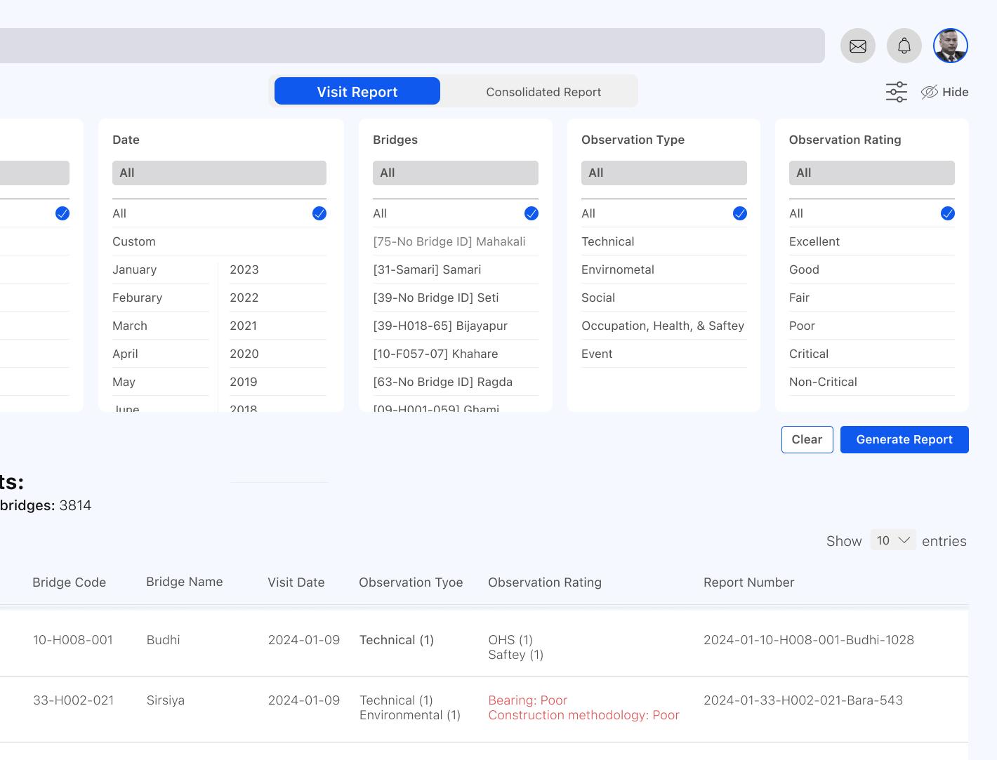 • Seamless integration with the Bridge Management System (BMS) for precise bridge data and coordinates.