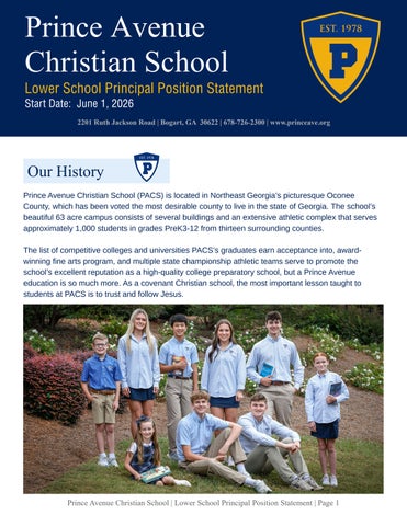 We seek a lower school principal who excels at buildi meaningful relationships with students who is also an effective instructional leader, administrator, and communicator Prince Avenue Christian School serve approximately 1,000 students in grades PreK-3 throug with 446 students in the lower school taught and disci by a dedicated faculty of 53 teachers.
