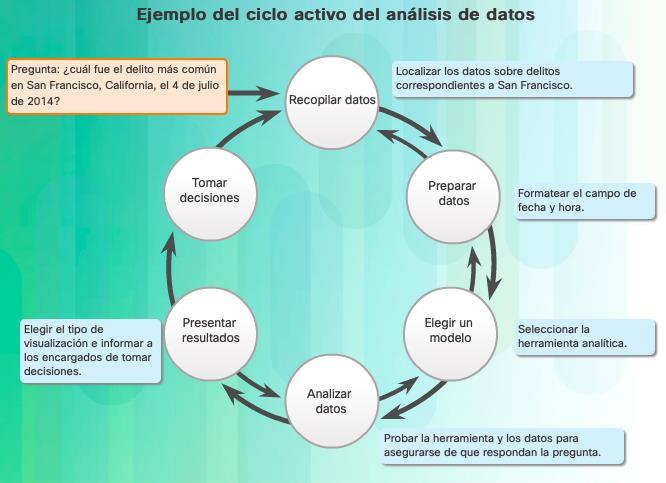 - Preparación de datos: este paso puede implicar muchas tareas a fin de transformar los datos a un formato adecuado para la herramienta que se utilizará. El conjunto de datos de delitos puede estar preparado para el análisis. Sin embargo, generalmente deben hacerse algunos ajustes para ayudar a responder la pregunta.